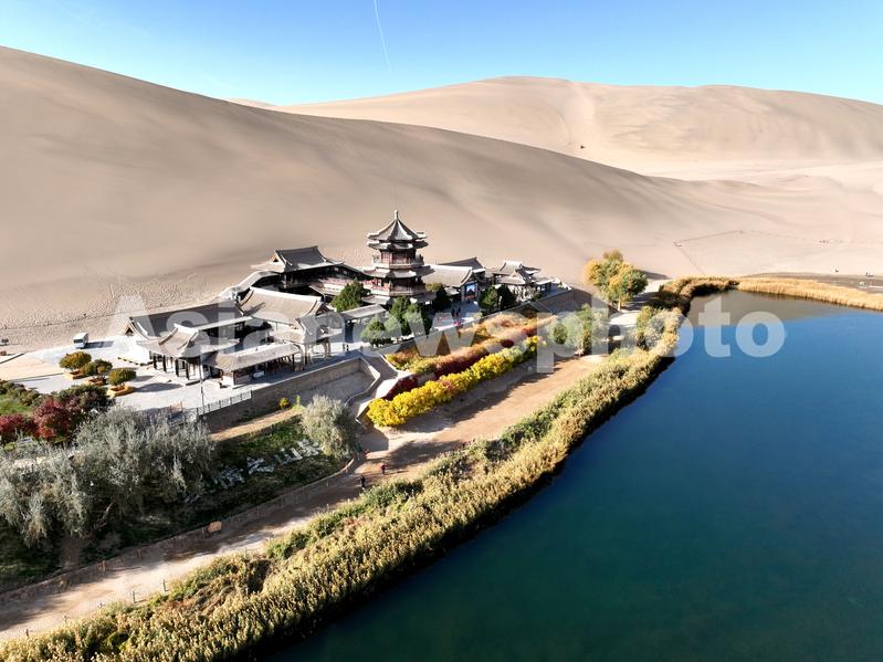 图片说明:这是2023年10月28日拍摄的甘肃省敦煌市鸣沙山月牙泉景区秋景。