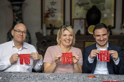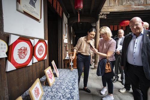 浙江金华:外国友人体验剪纸艺术 查看组图