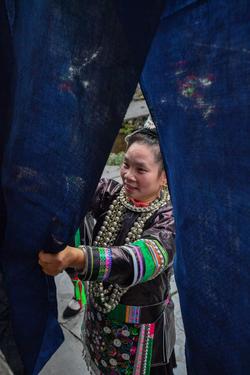 贵州榕江:阳光明媚侗族妇女晒布忙 查看组图