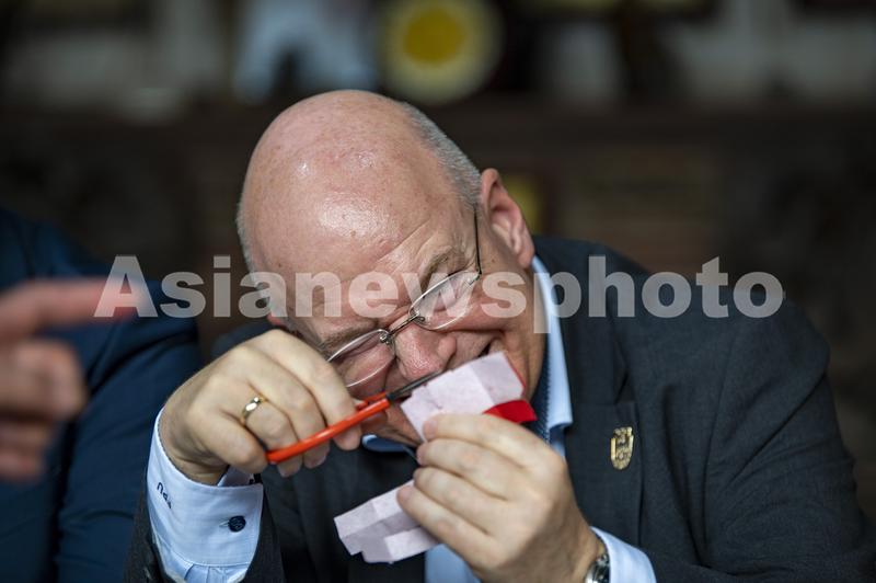浙江金华:外国友人体验剪纸艺术 查看组图