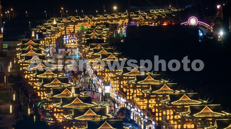 2023年10月30日晚,游人在广西南宁市五象新区“广旅·南宁之夜”游玩(无人机照片)。