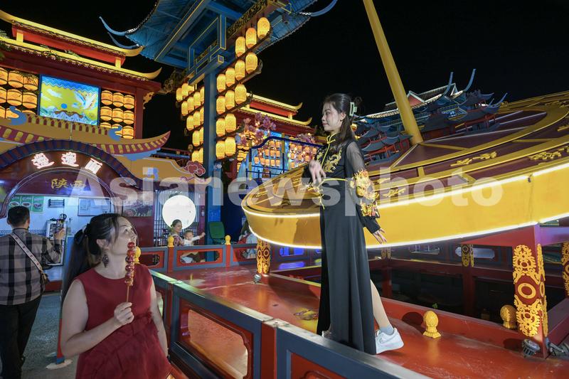 2023年10月30日,在广西南宁市五象新区“南宁之夜”街区,市民和游客正在逛夜市、品美食、观表演,感受南宁城市的热情与活力。