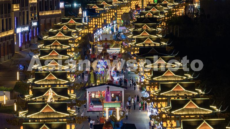 2023年10月30日,在广西南宁市五象新区“南宁之夜”街区,市民和游客正在逛夜市、品美食、观表演,感受南宁城市的热情与活力。