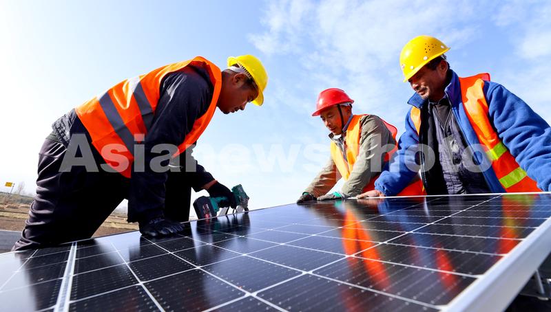 2023年11月7日,甘肃省张掖市临泽县15兆瓦分布式光伏发电项目新华镇西街村光伏发电板安装进入施工高峰,施工人员正在紧张忙碌地为每家农户安装光伏发电板。