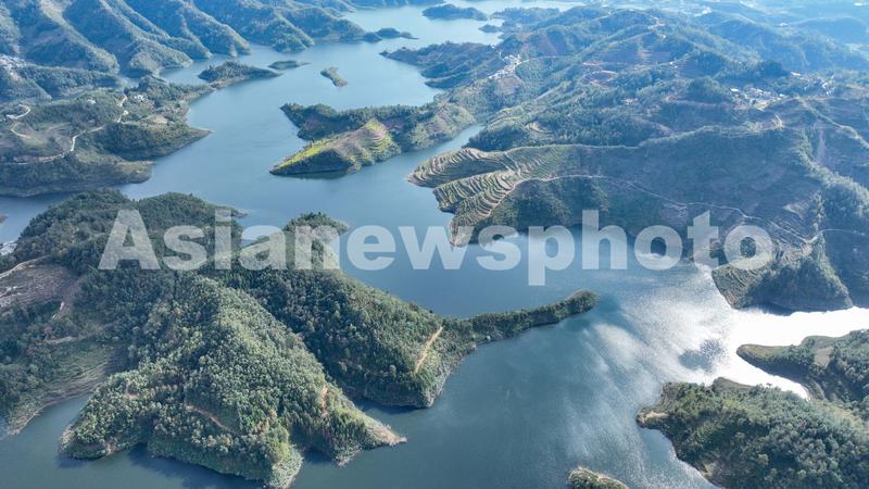 2023年11月8日,贵州省安顺市紫云苗族布依族自治县黄家湾水库,水清岸绿,景美如画。