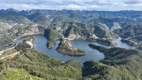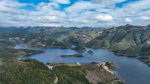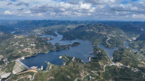 2023年11月8日,初冬时节,贵州省安顺市紫云苗族布依族自治县的黄家湾水库,水清岸绿,景美如画。
