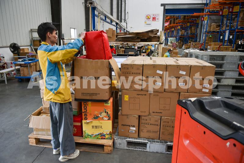 江苏南京:物流基地分拣忙 迎接“双11”物流高峰