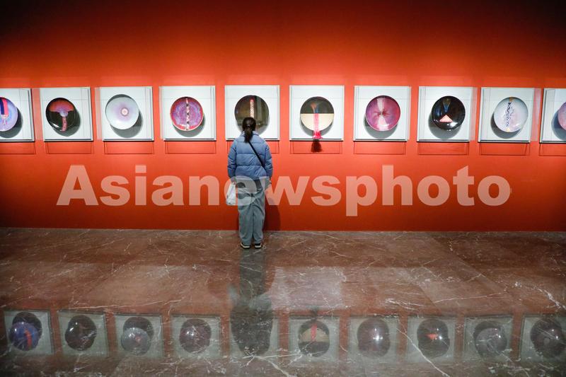 2023年11月14日,观众在济南市美术馆参观韩美林艺术展。