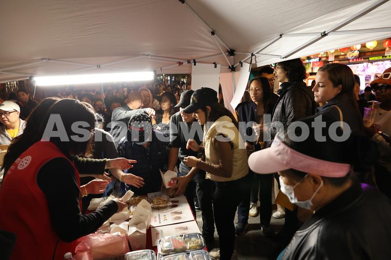 图片说明:游客在唐人街夜市品尝特色美食。