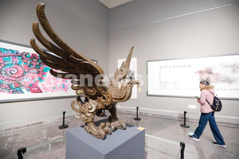 2023年11月14日,观众在济南市美术馆参观韩美林艺术展。