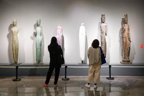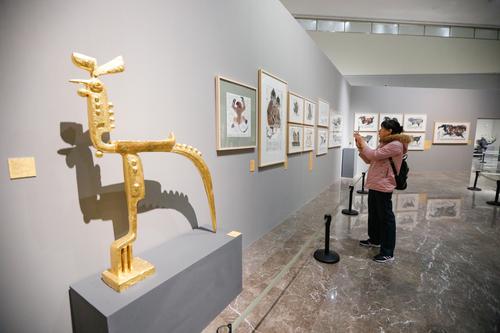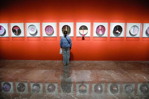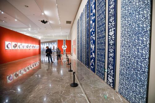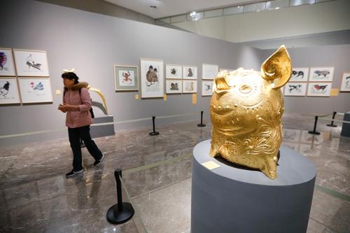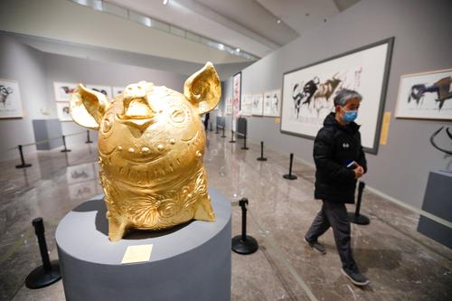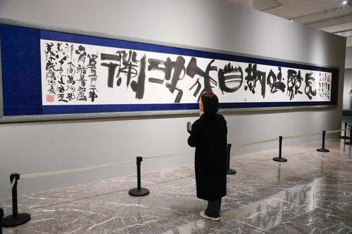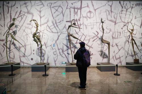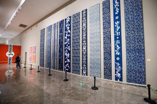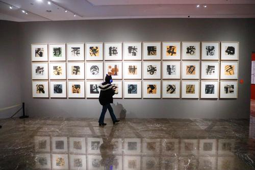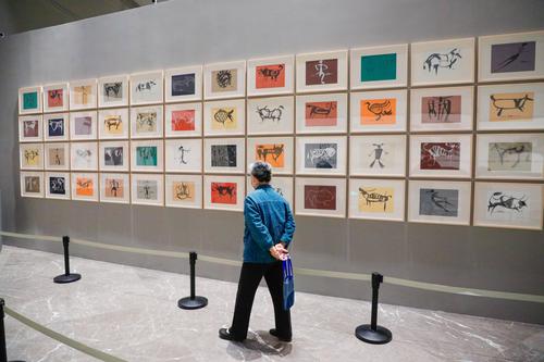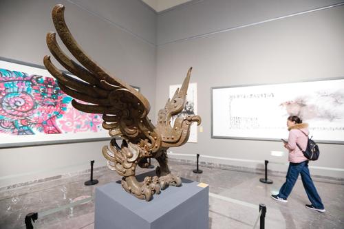 2023年11月14日,观众在济南市美术馆参观韩美林艺术展。