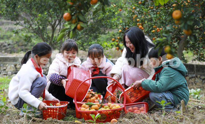 2023年11月14日,贵州省黔西市素朴镇素丰小学校园农场里橘子成熟了,老师带领学生快乐丰收。素丰小学在校园内开设4亩地的金钱橘种植体验园地,让学生走进果园,亲近自然,体验劳动的艰辛和丰收的喜悦,增长学生农事知识,从小培养勤俭节约、热爱劳动的良好习惯。