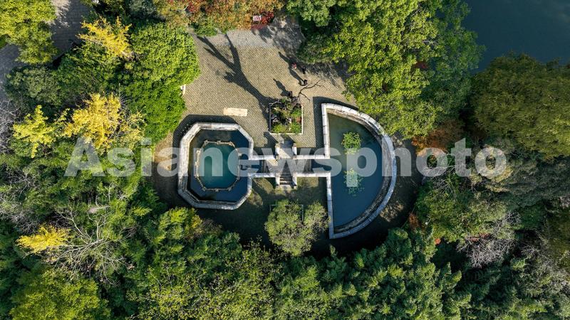 2023年11月14日,湖北省襄阳市习家池景区秋景如画,吸引了许多市民和游客前往赏秋。