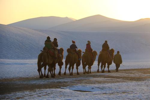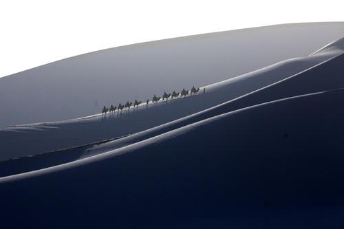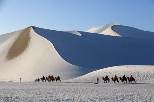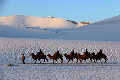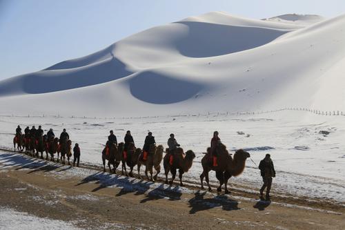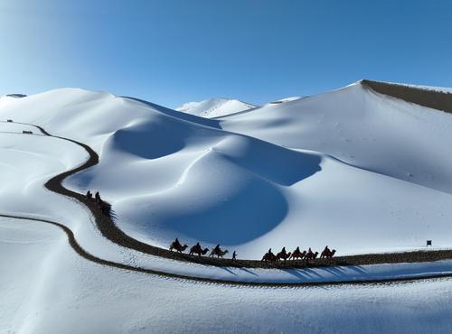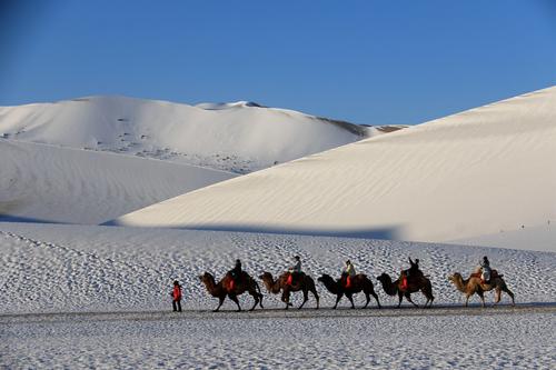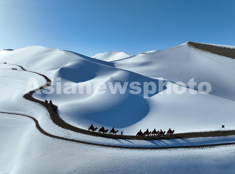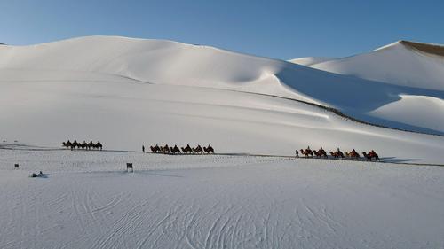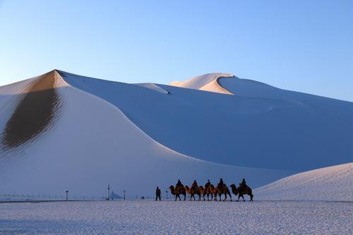 甘肃敦煌:雪后大漠景如画 查看组图