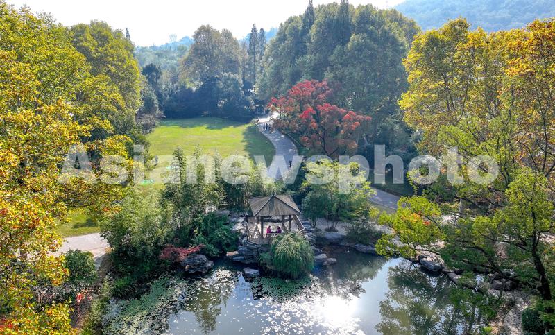 2023年11月14日,湖北省襄阳市习家池景区秋景如画,吸引了许多市民和游客前往赏秋。