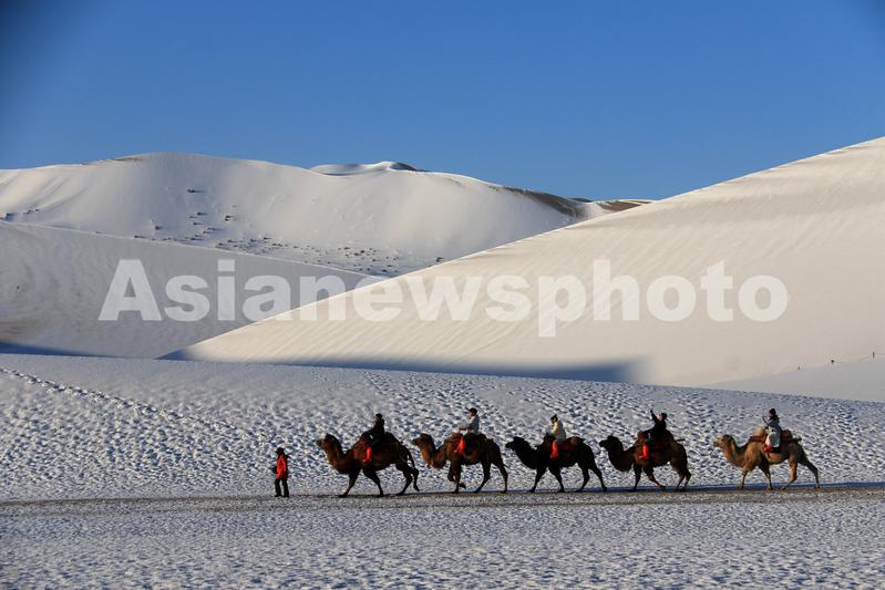 甘肃敦煌:雪后大漠景如画 查看组图