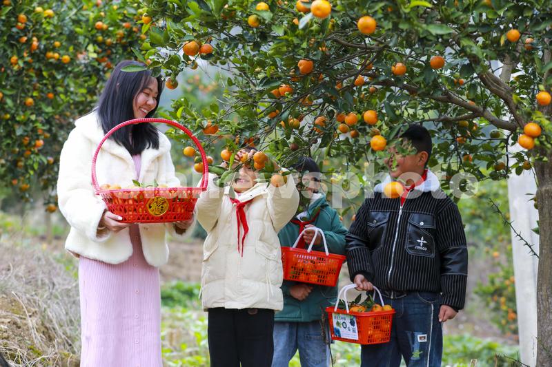 2023年11月14日,贵州省黔西市素朴镇素丰小学校园农场里橘子成熟了,老师带领学生快乐丰收。素丰小学在校园内开设4亩地的金钱橘种植体验园地,让学生走进果园,亲近自然,体验劳动的艰辛和丰收的喜悦,增长学生农事知识,从小培养勤俭节约、热爱劳动的良好习惯。