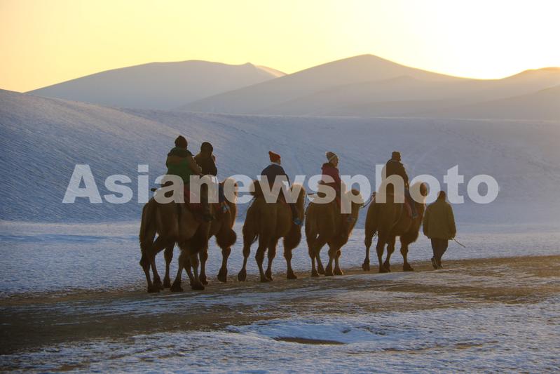 甘肃敦煌:雪后大漠景如画 查看组图