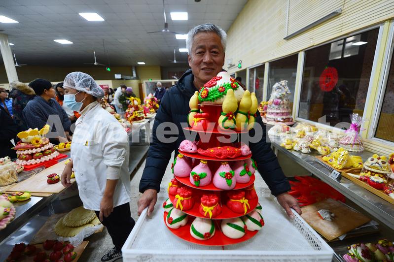图片说明:2023年11月16日,在山东省青岛市崂山区王哥庄举行的馒头大赛上,村民送来自家制作的寿桃生日面塑准备参赛。