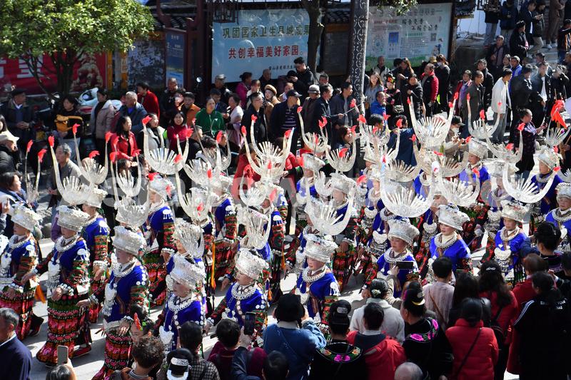 2023年11月16日,2023中国·雷山苗年暨鼓藏节非遗大巡游及开幕式在贵州省黔东南州雷山县县城举行。当地苗族同胞和各地游客欢聚一堂,共庆苗族新年暨鼓藏节。48支少数民族巡游队伍参加开幕式。广场上,歌舞表演、万人芦笙会等轮番上演。