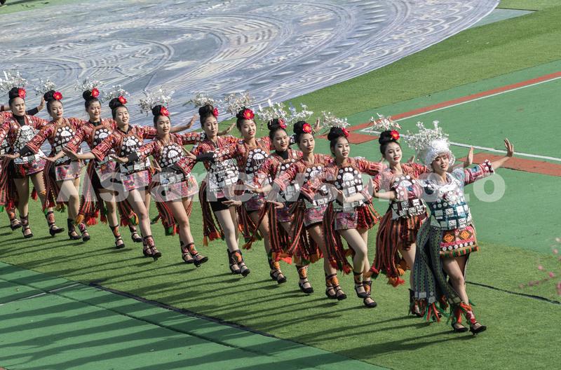 2023年11月16日,苗族姑娘在开幕式上表演苗族舞蹈《锦鸡舞》。