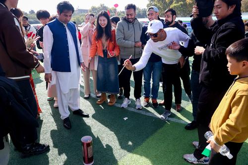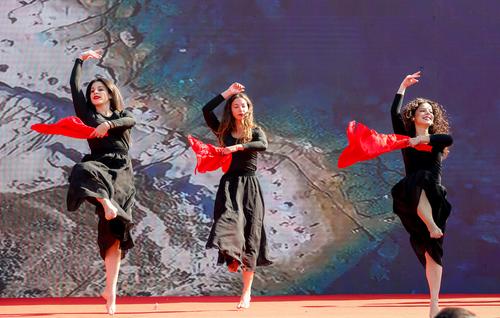 图片说明:2023年11月18日,湖北武汉,外国留学生跳着欢快的舞蹈。