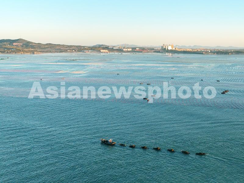 每年11—12月,正值海带“播种”时节,“中国海带之都”山东省荣成市各海带养殖区域到处是一派繁忙的劳动景象,产业工人抓紧夹苗,运送海带苗的船只往返于海洋牧场,新布置的海带架子在阳光的照射下星罗棋布,景观独特。