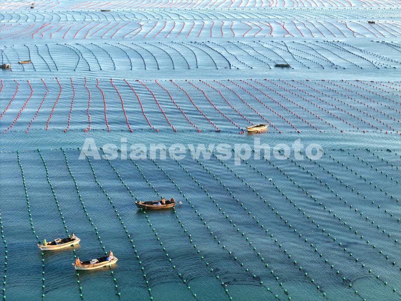 每年11—12月,正值海带“播种”时节,“中国海带之都”山东省荣成市各海带养殖区域到处是一派繁忙的劳动景象,产业工人抓紧夹苗,运送海带苗的船只往返于海洋牧场,新布置的海带架子在阳光的照射下星罗棋布,景观独特。