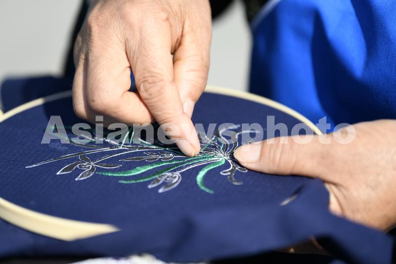 11月20日,绣娘在贵州省黔西南布依族苗族自治州册亨县纳福广场参加刺绣比赛。