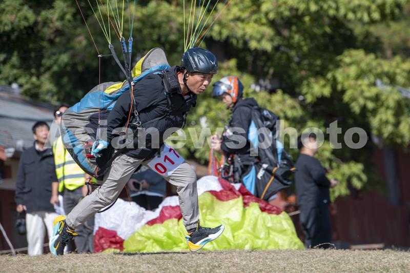 2023年11月20日,浙江省兰溪市女埠街道白露山滑翔伞训练基地,来自全国各地的滑翔伞运动员冲向起点,进行滑翔伞定点赛。