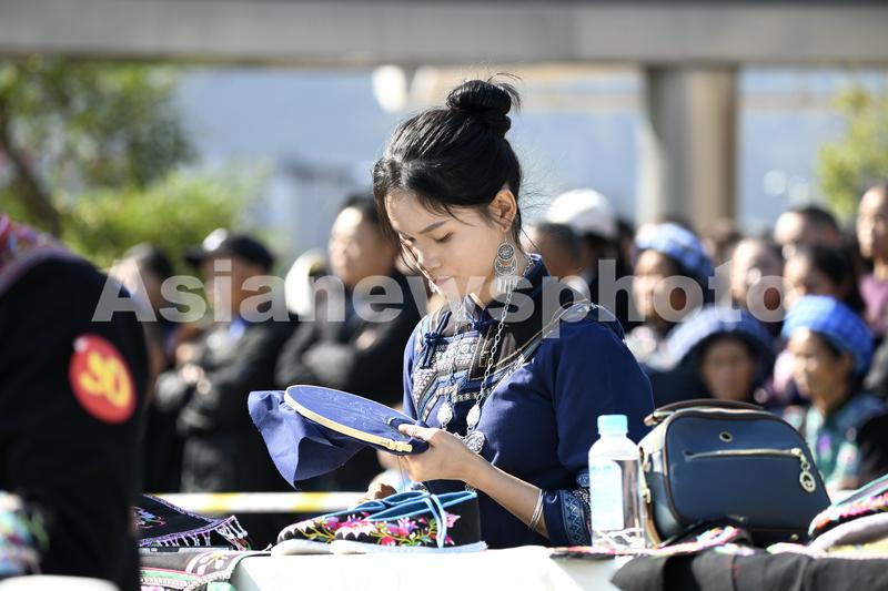 11月20日,绣娘在贵州省黔西南布依族苗族自治州册亨县纳福广场参加刺绣比赛。