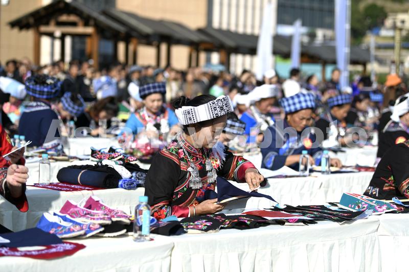 2023年11月20日,贵州省黔西南布依族苗族自治州册亨县2023年中华布依文化年刺绣大赛在纳福广场举行,来自册亨县各乡镇村寨的100名绣娘齐聚一堂飞针引线竞技手艺,向观众和游客展现少数民族的文化魅力。