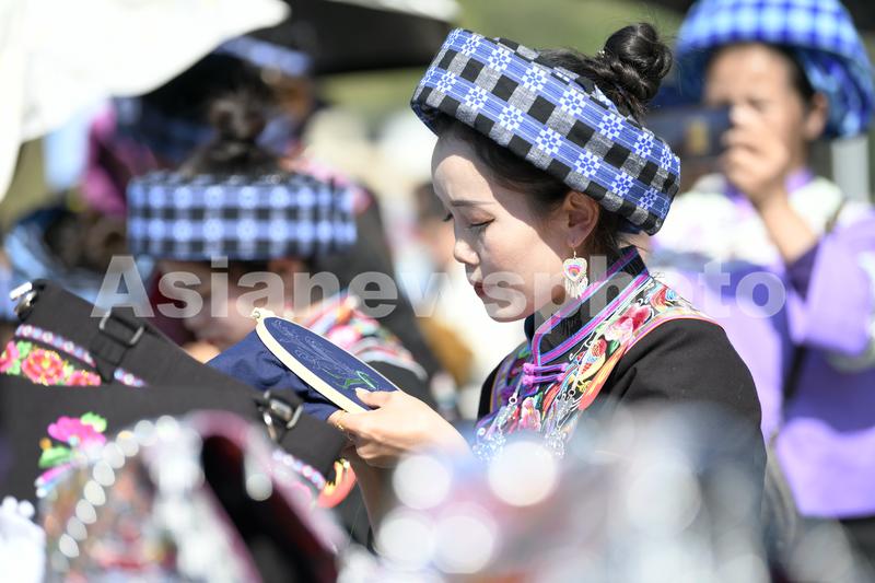 2023年11月20日,贵州省黔西南布依族苗族自治州册亨县2023年中华布依文化年刺绣大赛在纳福广场举行,来自册亨县各乡镇村寨的100名绣娘齐聚一堂飞针引线竞技手艺,向观众和游客展现少数民族的文化魅力。