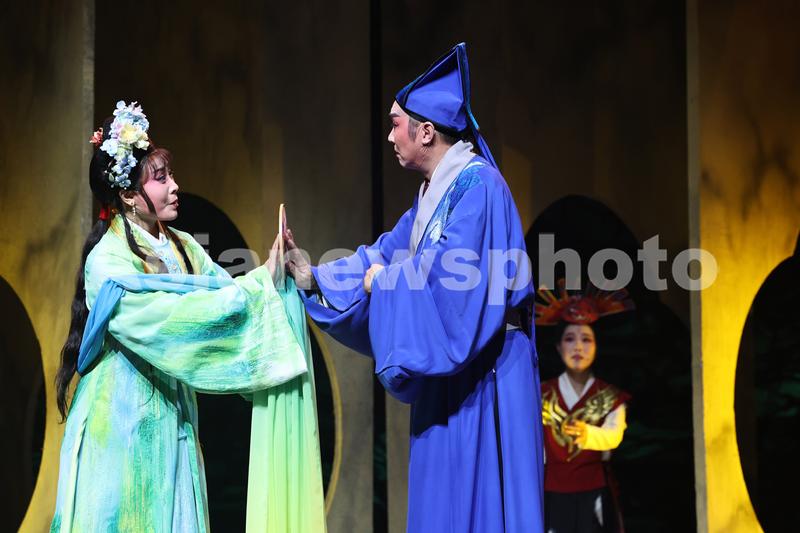 图片说明:2023年11月20日,在江苏省南通市,大型新编传统通剧《陈英卖水》的演出现场。