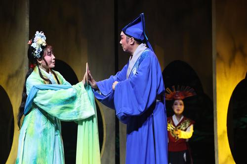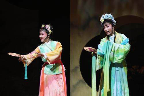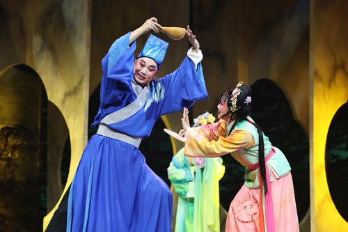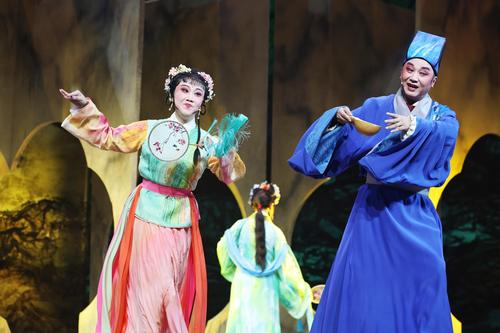图片说明:2023年11月20日,在江苏省南通市,大型新编传统通剧《陈英卖水》的演出现场。