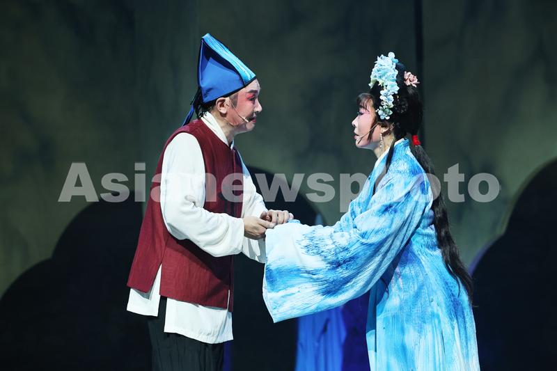 图片说明:2023年11月20日,在江苏省南通市,大型新编传统通剧《陈英卖水》的演出现场。