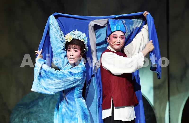 图片说明:2023年11月20日,在江苏省南通市,大型新编传统通剧《陈英卖水》的演出现场。