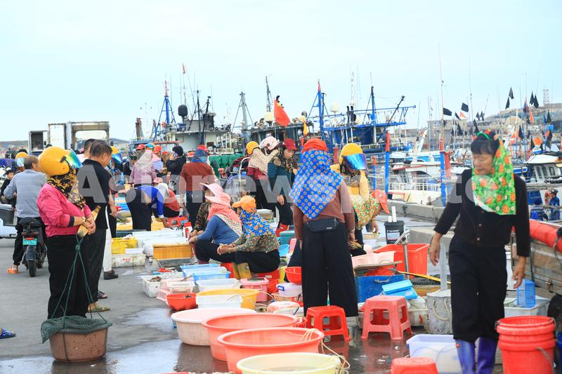图片说明:11月16日,在福建省惠安县崇武渔港码头,一艘艘渔船靠近码头,岸上人头攒动,一派兴旺。
