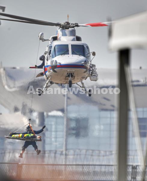 图片说明:交通运输部南海第一救助飞行队开展应急救援演练。