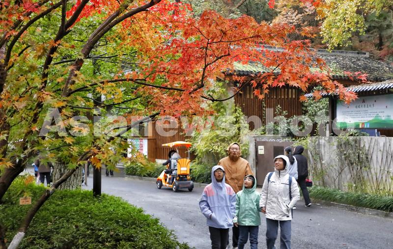 2023年11月26日,游客在江苏省南京市栖霞山风景区赏枫游玩。