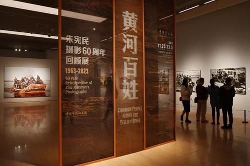 图片说明:2023年11月26日,“黄河百姓——朱宪民摄影60周年回顾展”在北京中国美术馆举办,吸引市民观赏。