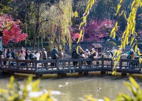 图片说明:2023年12月2日,游客在江苏省南京栖霞山景区游玩。