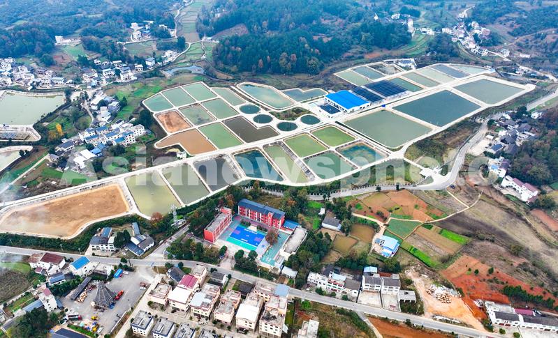 图片说明:2023年12月3日,贵州省铜仁市玉屏侗族自治县朱家场镇茅坡村,鱼苗孵化基地、色彩斑斓的森林、纵横交错的道路与错落有致的村庄相互映衬,犹如一幅美丽的冬日乡村画卷。