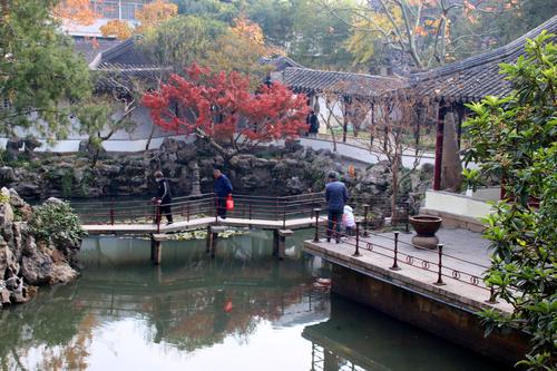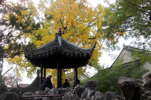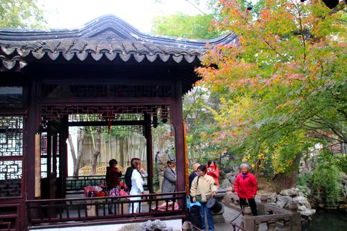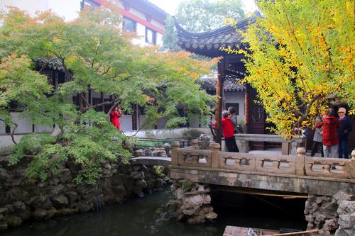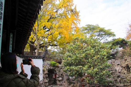 2023年12月4日,游客在江苏苏州园林怡园赏景游览。初冬时节,江苏苏州古典园林怡园色彩斑斓,景色如画。