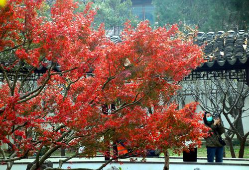 2023年12月4日,游客在江苏苏州园林怡园赏景游览。