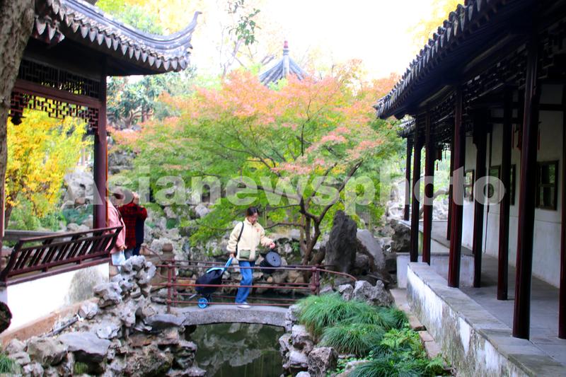 2023年12月4日,游客在江苏苏州园林怡园赏景游览。初冬时节,江苏苏州古典园林怡园色彩斑斓,景色如画。