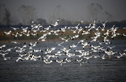 杭州钱塘大湾区湿地公园越冬候鸟场面壮观 查看组图