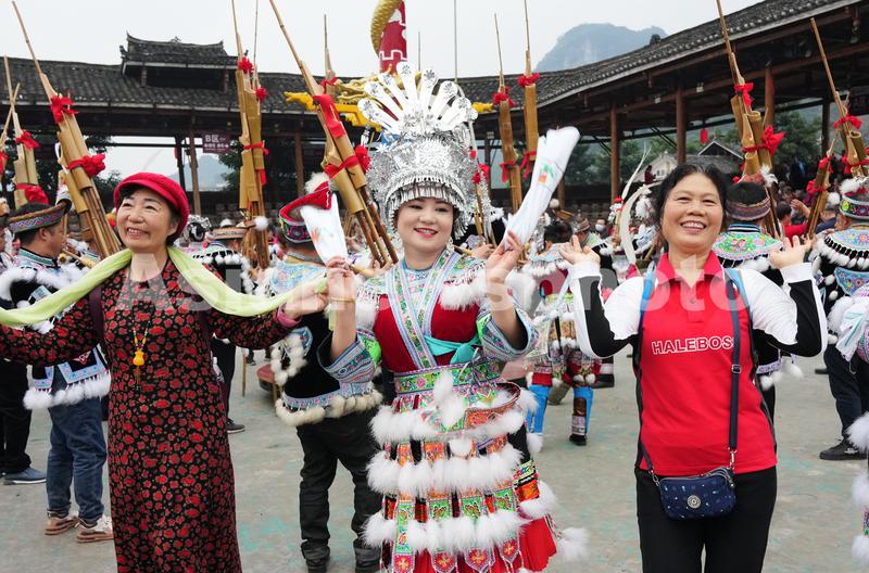 近日,广西柳州市融水苗族自治县梦呜苗寨景区开展苗年、打同年和苗族婚礼等苗族冬季民俗沉浸式展演活动,众多游客纷至沓来领略苗家风情,体验苗寨民俗,助推了景区冬季旅游热的兴起。