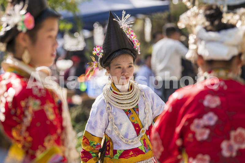 2023年12月8日,在贵州省从江县西山镇务林中心村,身着节日盛装的苗族村民参加芦笙节活动。