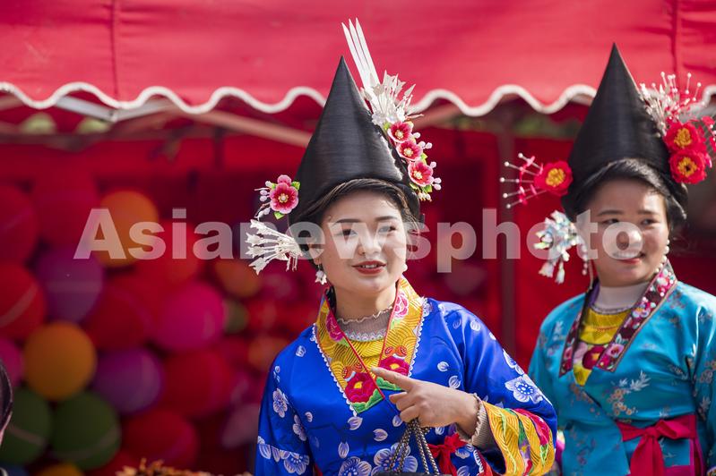 2023年12月8日,在贵州省从江县西山镇务林中心村,身着节日盛装的苗族村民参加芦笙节活动。